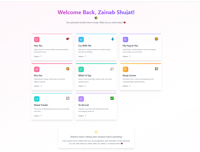 Built with Base44. Originally created exclusively as a gift for my sister, SibsLove is a deeply personalized web app designed as a "digital hug" and supportive companion.